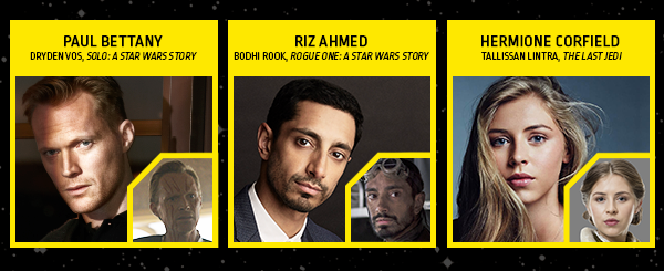 El sitio oficial de Star Wars: Celebration Chicago actualizó su lista de invitados con tres actores que interpretaron a varios personajes en las películas de Star Wars. Destacan en la lista la presencia de Paul Bettany, mejor conocido por los fans de Star Wars como Dryden Vos y de Riz Ahmed, mejor conocido por los fans de Star Wars como Bodhi Rook.