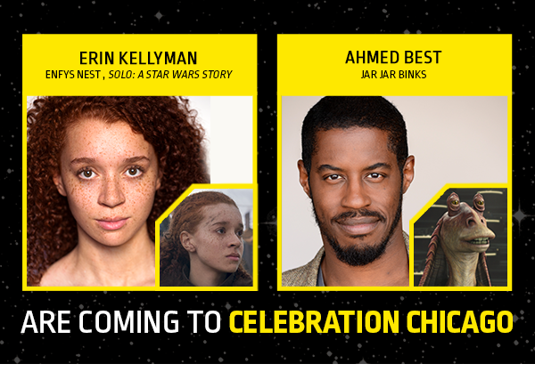 El sitio oficial de Star Wars: Celebration Chicago actualizó su lista de invitados con dos actores que interpretaron a varios personajes en las películas de Star Wars. Se trata de Ahmed Best, mejor conocido por los fans de Star Wars como Jar Jar Binks y de Erin Kellyman, mejor conocida por los fans de Star Wars como Enfys Nest.