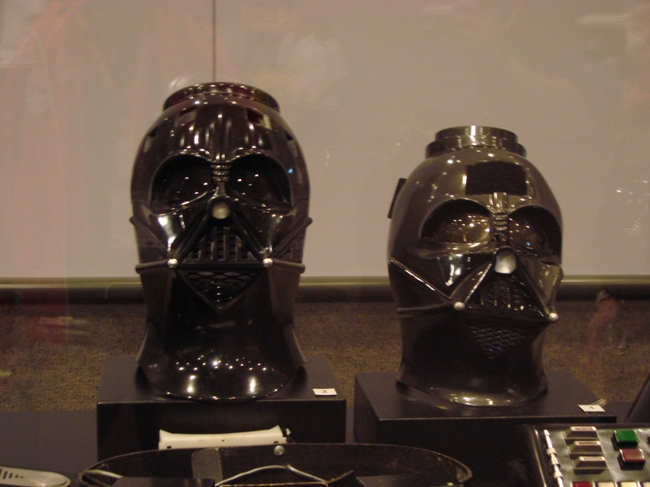 Cascos en los que se aprecian las diferencias de los trajes de Darth Vader utilizados en el rodaje de los Episodios III, IV, V y VI