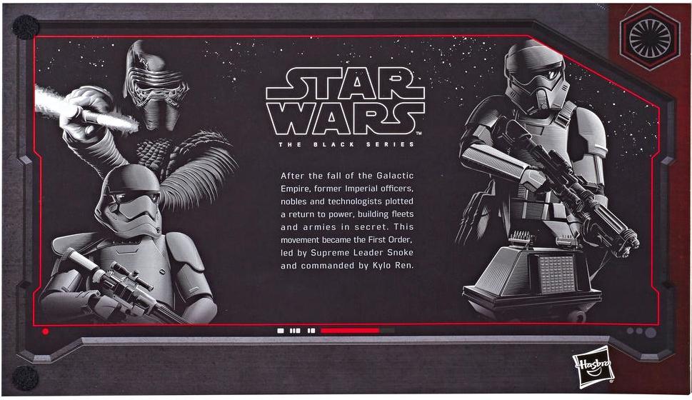 El día de hoy Hasbro anunció que las tiendas que se encuentran dentro de los Parques Disney tendrán de forma exclusiva un paquete de 4 figuras de la colección Black series de 6" conocido como "Star Wars The Black Series First Order 4-Pack".