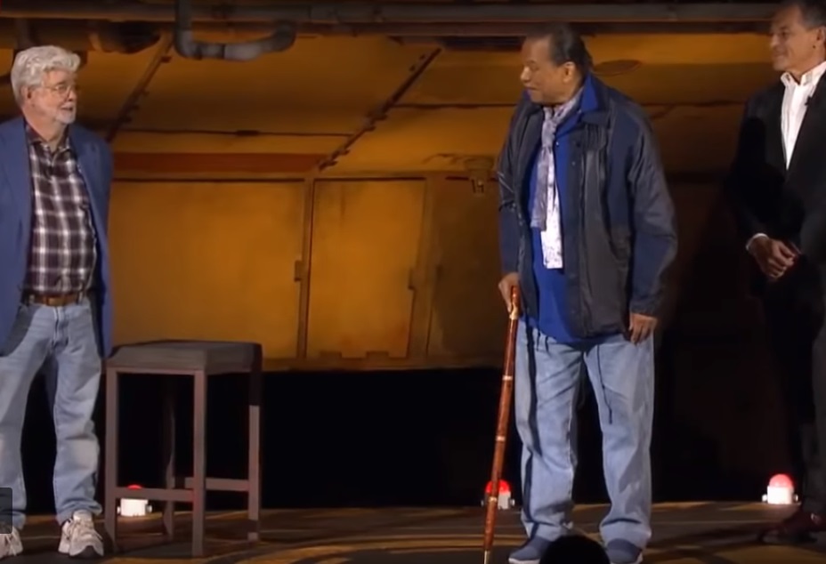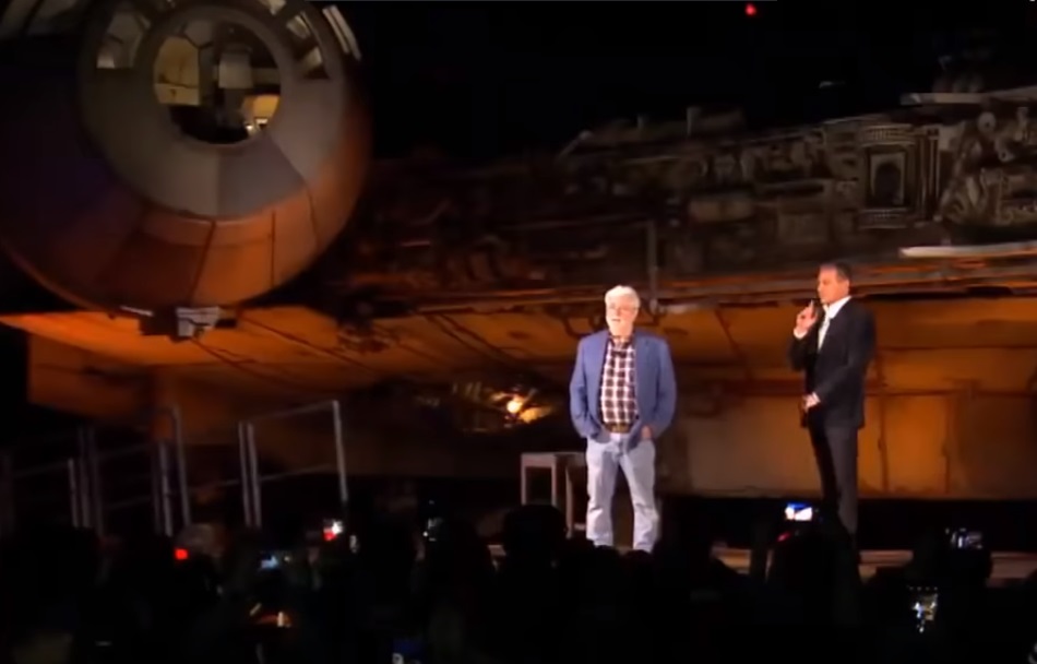 El primero en aparecer en el escenario fue George Lucas, el creador de Star Wars, a quien Bob Iger considera todo un visionario y adelantado a su época, creador de una historia que mezcló la ciencia ficción con fantasía romántica y grandes aventuras. Con Galaxy's Edge Disney está construyendo el legado de dos grandes visionarios, Walt Disney y George Lucas. Los dos fueron muy talentosos, innovadores y creativos.