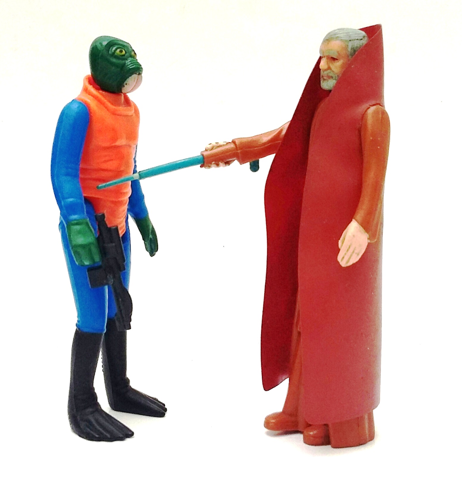 Las figuras que aparecen son las de Obi-Wan Kenobi y Walrusman de la colección vintage de Star Wars producidas por Kenner.