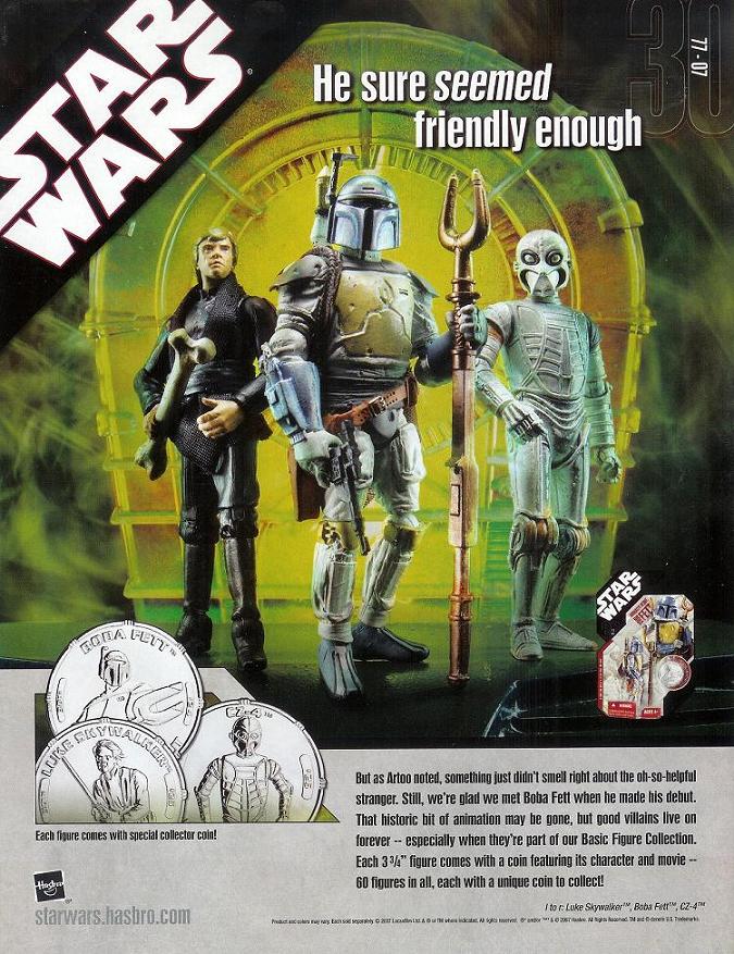 El siguiente anuncio de Hasbro promocionando las figuras del Wave 4 de la colección del 30 Aniversario de Star Wars apareció en diferentes revistas de Estados Unidos.