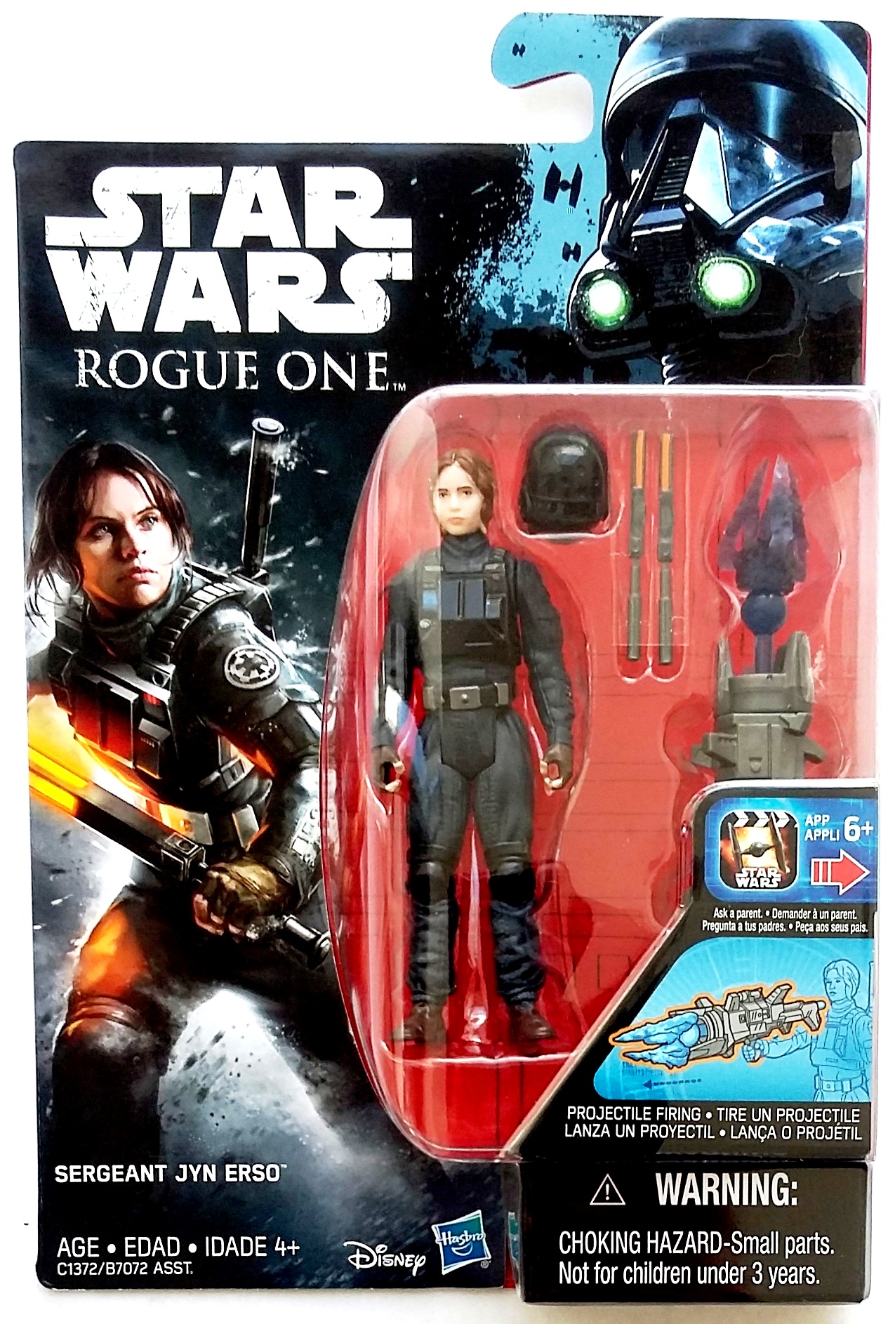Se trata del nombre del personaje. Algunas figuras vienen con el nombre de Sergeant Jyn Erso mientras que otras figuras solo dicen Jyn Erso. Al parecer hasta el momento la variante más difícil de encontrar es la que solo dice Jyn Erso.