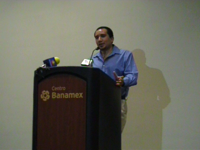 Julio Moreno da la bienvenida a la conferencia de prensa de la convención Eworld 2003