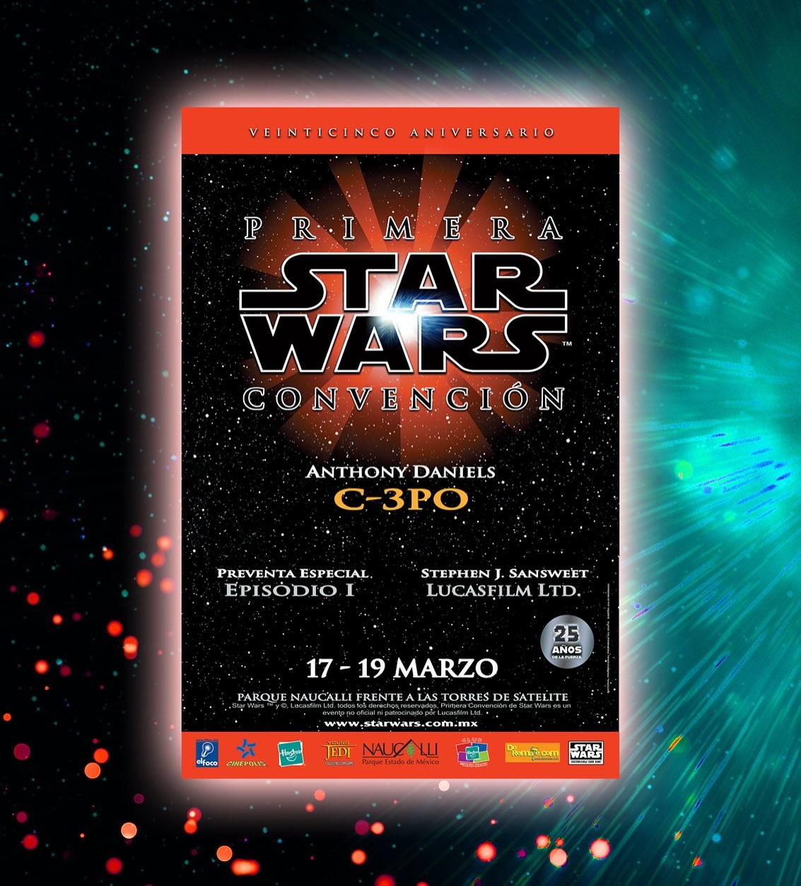 Las primeras 200 personas que asistan a la conferencia de 25 años de Star Wars. Recordando la Primera Convención de Star Wars en México recibirán un póster conmemorativo de aquella convención. Si tuviste la fortuna de asistir a esa convención o si no pudiste ir, de cualquier forma se trata de un gran coleccionable que podrá formar parte de tu colección a partir del próximo domingo 20 de Julio.