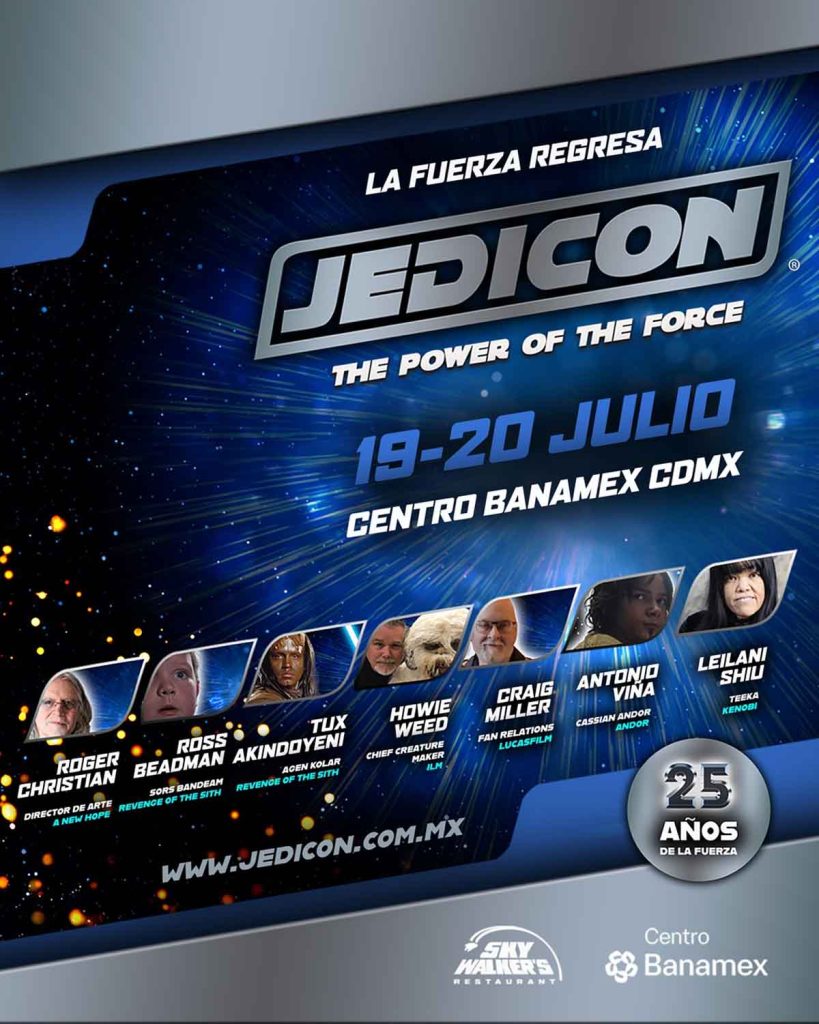 El próximo Sábado 19 de Julio y Domingo 20 de Julio se celebrará en el Centro de Convenciones Banamex de la Ciudad de México la JediCon, un evento que celebrará los primeros 25 años de Convenciones de Star Wars en México.