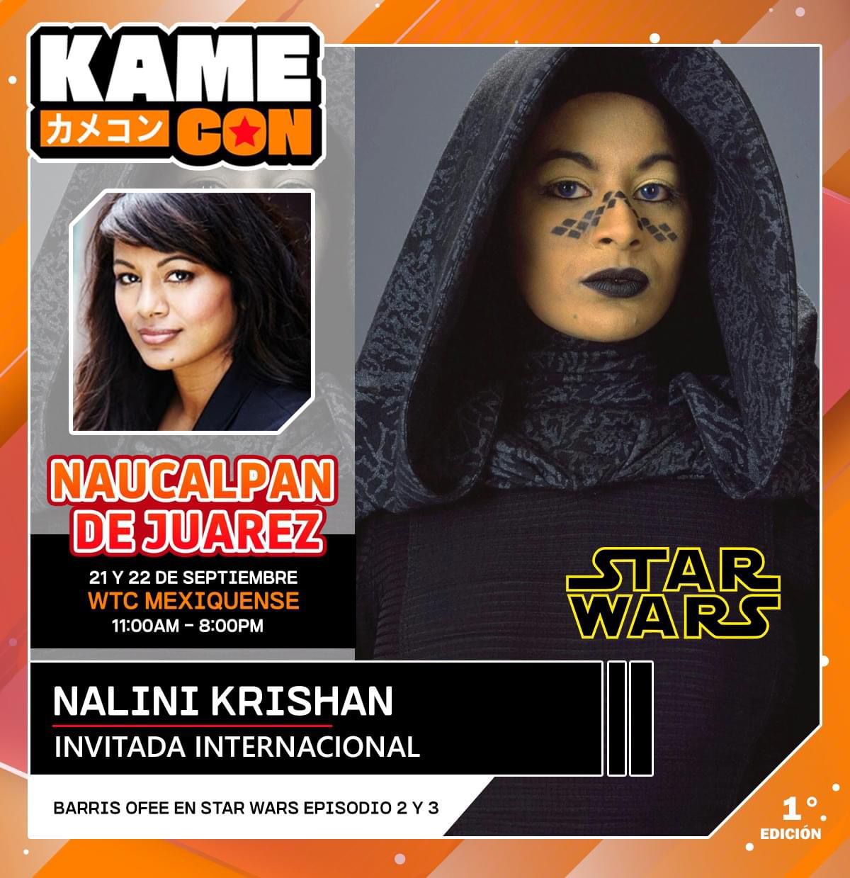 Kame Con anunció como invitada internacional para su primera edición que se celebrará el 21 y 22 de Septiembre a Nalini Krishan, mejor conocida por los fans de Star Wars como Barriss Offee en los Episodios 2 y 3 de Star Wars.