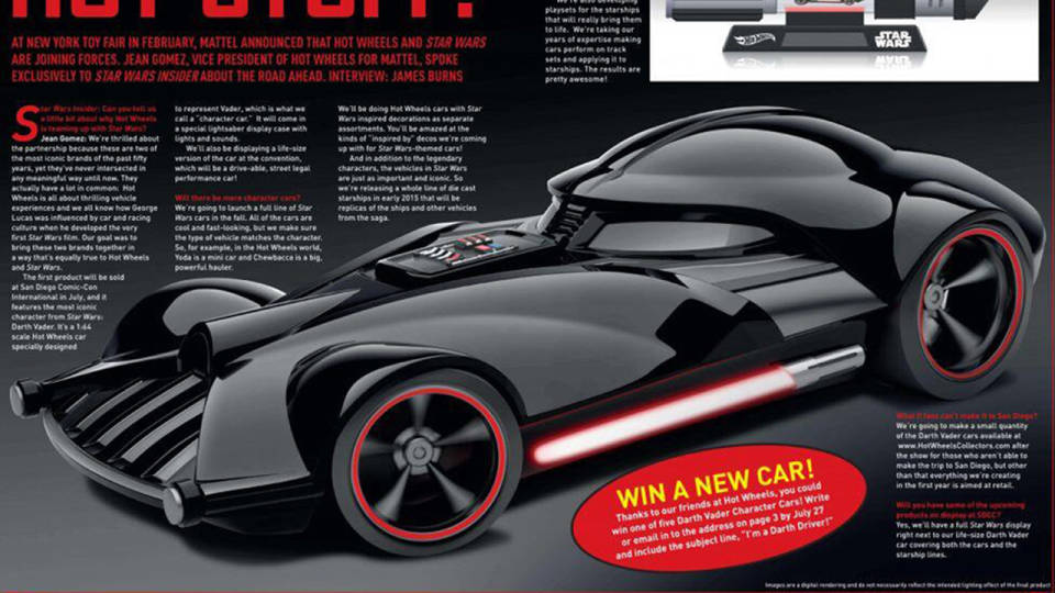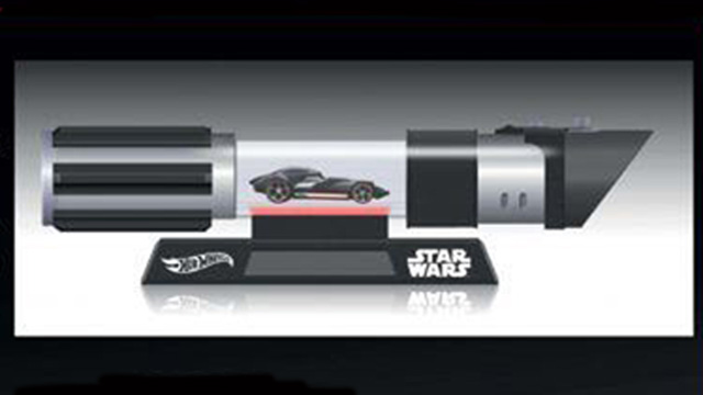 Después de que la revista número 150 de Star Wars Insider saliera a la venta, Hot Wheels presentó en su cuenta de Twitter la primera imagen de lo que será el empaque en el que se venderá el coche de Darth Vader. El empaque será el Lightsaber de Darth Vader. Sin duda un diseño digno de un exclusivo de Comic con.